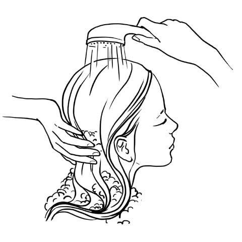 Étape 4 : Laisser agir quelques instants et rincer abondamment. Au besoin, faire un second Shampooing.