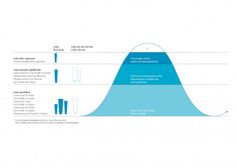 - Soins spécifiques : Soins de base et Intensifs pour le cuir chevelu sec