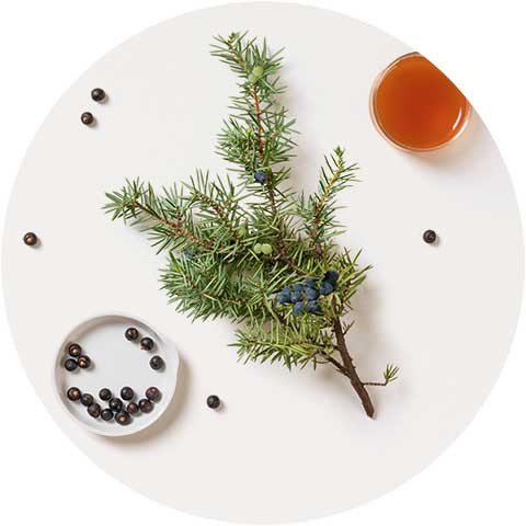 Le Genévrier à feuilles persistantes défie le vent et les intempéries où qu’il se trouve. Il peut même supporter une forte sécheresse sans dommages. Il accumule en lui des substances chauffantes et nourrissantes. Nous utilisons du Genévrier biologique et créons un extrait selon notre processus d’extraction rythmique à partir de ses baies. Il apporte vitalité, résistance et élasticité au cuir chevelu et aux cheveux.