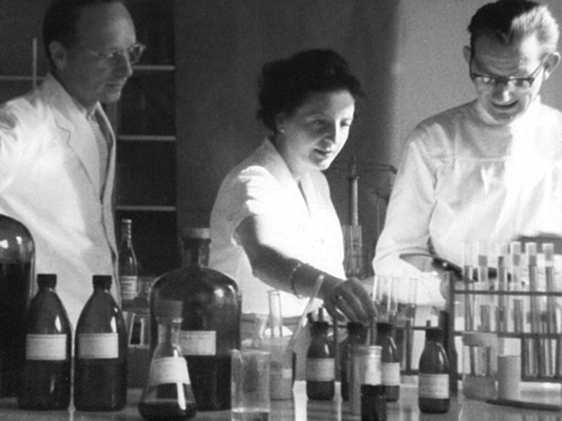 Le pharmacien Rudolf Plantener, Elisabeth Sigmund et le chimiste Dr. Reinhard Schoppmann (de gauche à droite) ont créé en 1964 le premier groupe de développement de la nouvelle « Cosmétique WALA ».