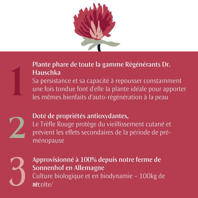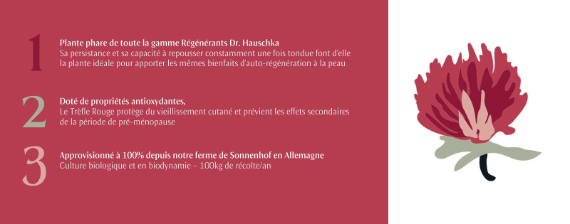 À base de Trèfle Rouge, les formules riches mais aux textures légères de la gamme Régénérant pénètrent rapidement dans la peau et lui donnent l’impulsion de s'auto-régénérer.